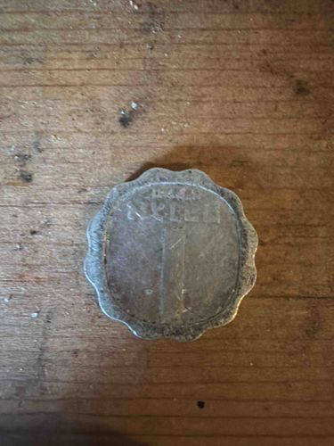 This is a 1 Agora coin from Israel, a small denomination of the Israeli Shekel or Lira, characterized by its distinctive 12-notched scalloped (dodecagonal) edge. The coin is minted from an aluminum-magnesium alloy, giving it a dull, silvery-grey matte appearance. This specific design was introduced around 1960. The obverse features the numeral '1' prominently in the center, with the word 'Agora' written in Hebrew script (אגורה) above it and the name of the country in Hebrew and Arabic. There are visible signs of significant environmental wear and surface oxidation, typical for soft aluminum coins. The surface exhibits a heavy patina, fine pitting, and numerous small scratches or 'bag marks.' Notably, the raised details are becoming soft due to circulation. There are no obvious mint marks visible in this lighting, but the piece displays the utilitarian, mid-20th-century craftsmanship typical of state-issued circulation coinage. The scalloped shape was specifically chosen to help visually and tactilely distinguish it from other denominations.