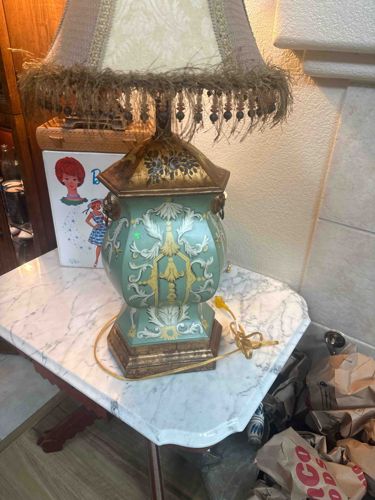 Neoclassical Style Hand-Painted Porcelain Table Lamp with Fringe Shade