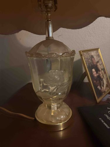 Vintage Frosted and Clear Molded Glass Rose Table Lamp