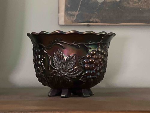 Fenton Grape and Cable Amethyst Carnival Glass Ferner