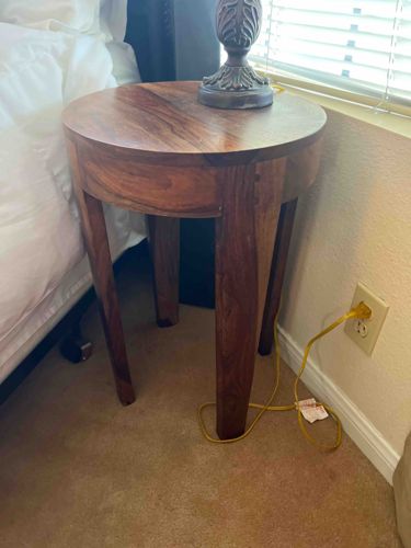 Modern Sheesham Wood Round Drum End Table