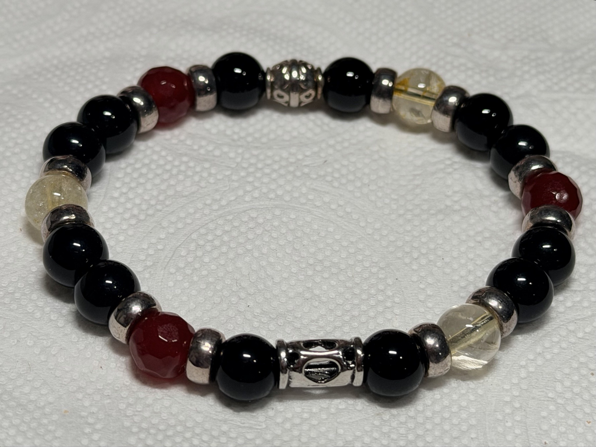 New, 8mm Citrine, Black Tourmaline and Ruby with sterling silver accents