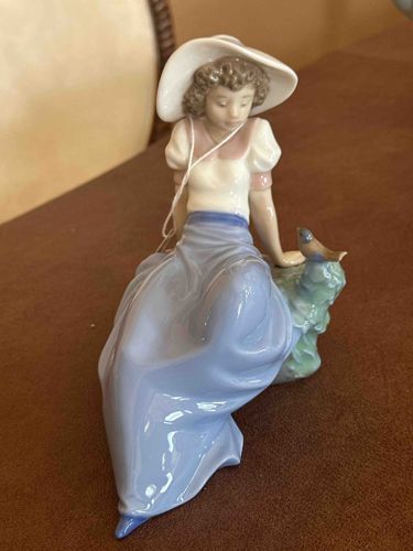 NAO by Lladro 'Girl Sitting With Bird' Porcelain Figurine