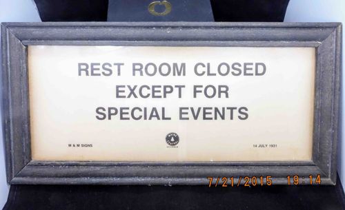 Framed 1931 Maine Central Railroad 'Rest Room Closed' Sign