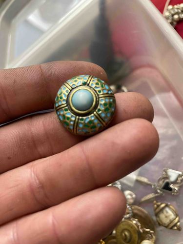 Vintage Enamel and Faux Turquoise Decorative Button
