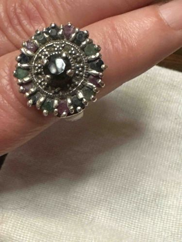 Italian Silver Multi-Gemstone Halo Cluster Ring