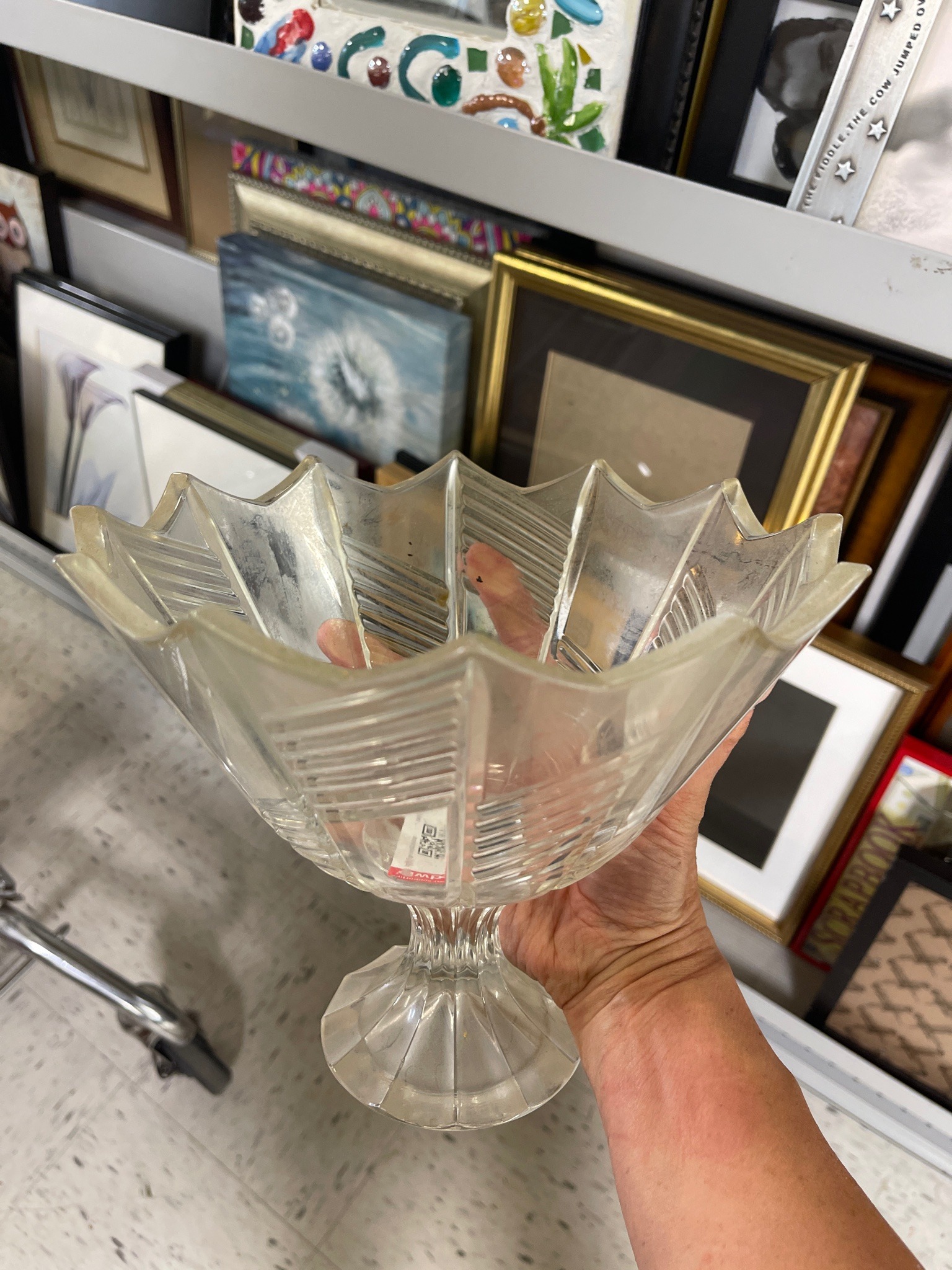 Art Deco Geometric Footed Glass Centerpiece Bowl