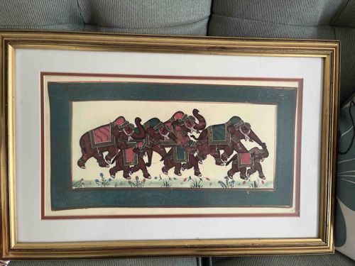 Rajasthani Style Indian Miniature Painting of a Procession of Ceremonial Elephants