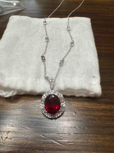 Large Oval-Cut Red Ruby and White Topaz Sterling Silver Pendant Necklace