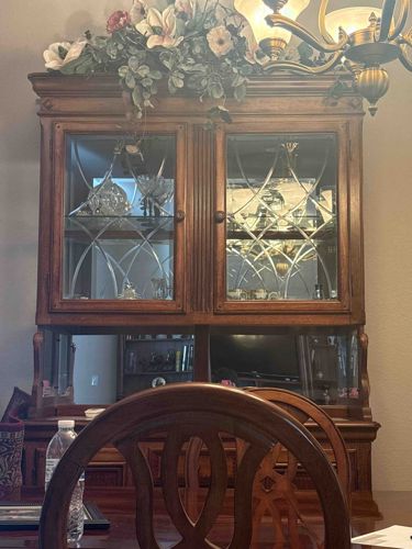 Traditional Two-Piece Wooden China Cabinet with Glass Display Doors