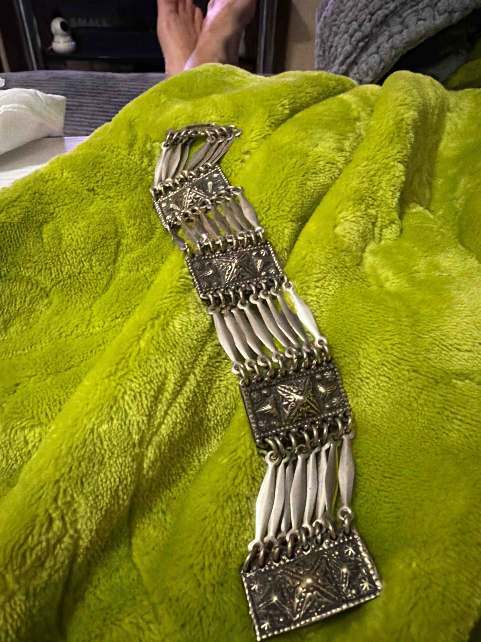Vintage Multi-Panel Silver Repoussé Bracelet