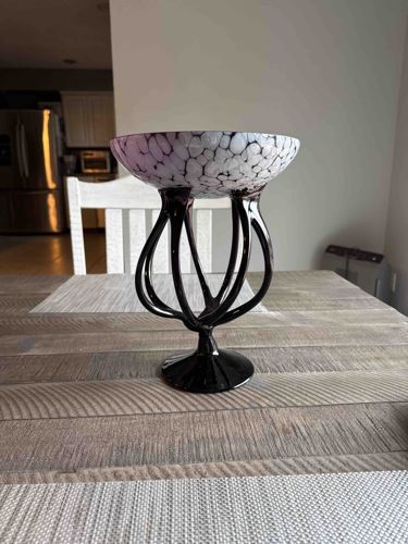 Murano Style Art Glass Compote with Jellyfish or Octopus Motif