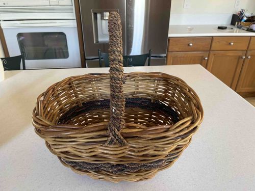 Hand-Woven Oval Wicker Basket with Twisted Handle
