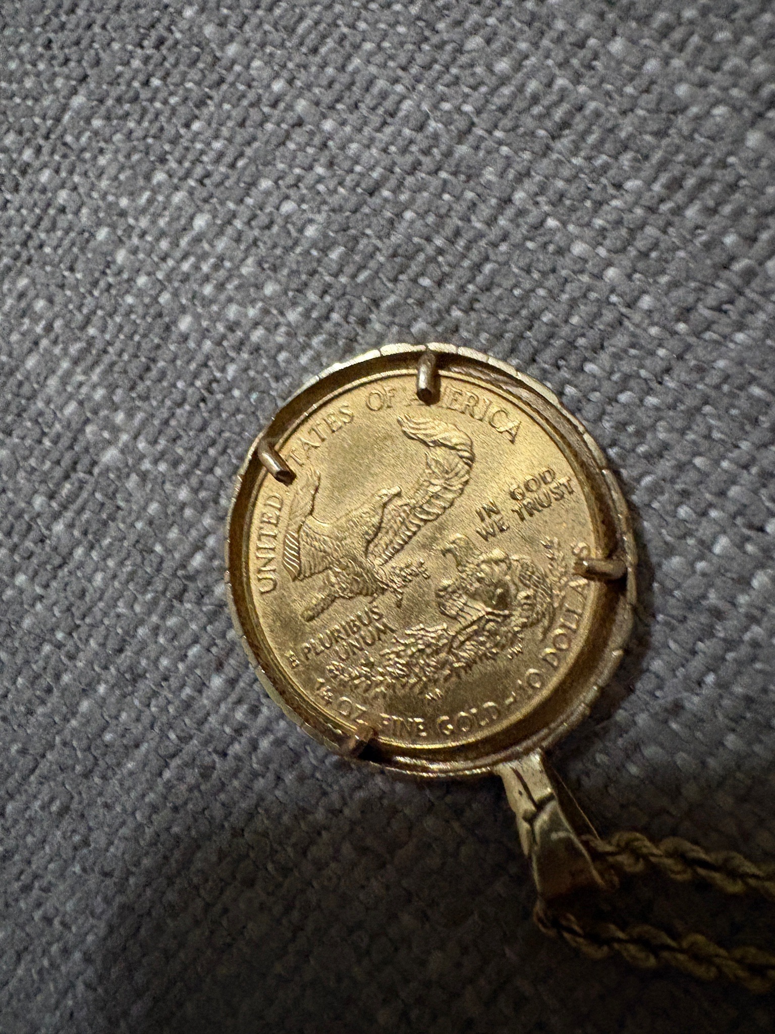 United States 1/4 oz Gold American Eagle Coin in Jewelry Pendant Setting