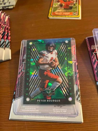 Leaf Valiant Peter Bourque Football Card (Green Shimmer Parallel)