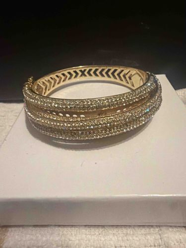 Gold-Tone Pave Crystal Multi-Band Hinged Bangle Bracelet