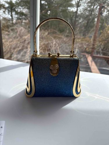 Vintage-Style Blue Glitter Ombré Evening Handbag with Gold-Tone Hardware