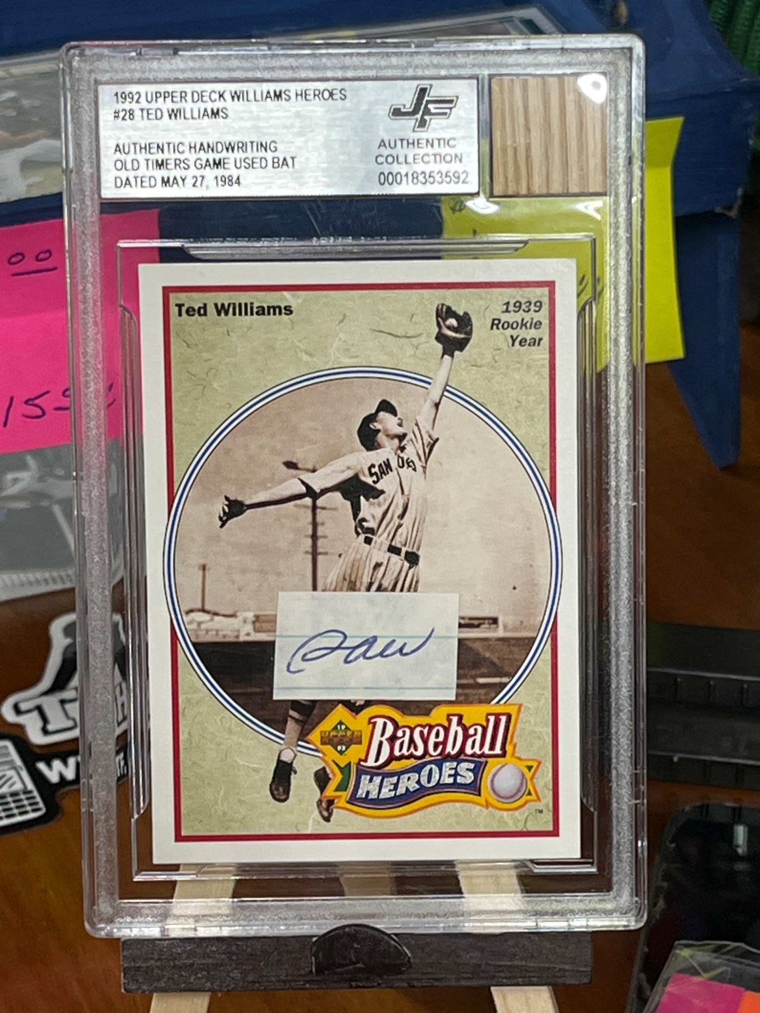 1992 Upper Deck Baseball Heroes #28 Ted Williams Authentic Cut Signature and Game-Used Bat Card