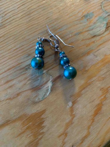 Teal Faux Pearl Graduated Drop Earrings