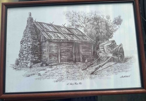 Framed Print of 'A Slab & Bark Hut' by Lawrie