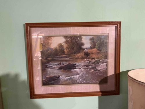 Framed Landscape Print of Horse and Rider Crossing a River