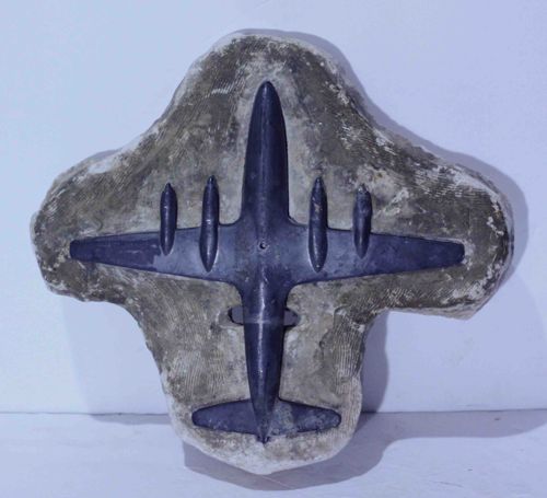 Mixed-Media Bronze and Concrete Aircraft Sculpture