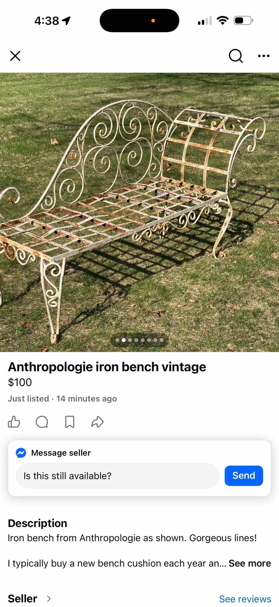 Anthropologie Scrollwork Iron Daybed Bench