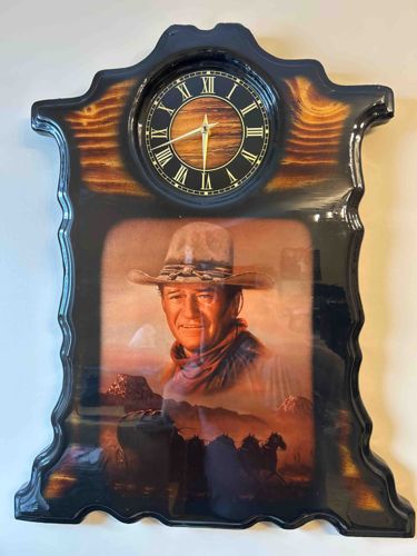 Vintage John Wayne 'Duke' Memorial Wood Slab Wall Clock