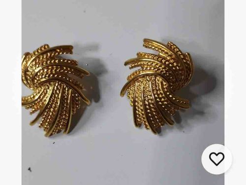 This is a pair of vintage clip-on or stud earrings featuring a dynamic, multi-layered spray design reminiscent of stylized wheat bundles or a sunburst. Constructed from a bright, polished yellow gold-tone metal, the earrings exhibit an intricate textural contrast. Each individual 'frond' or grain stem is rendered with a beaded or granulated texture down the center, flanked by smooth, high-polish borders that catch the light from various angles. The overall shape is asymmetrical and sweeping, creating a sense of movement. Based on the cast construction and the specific style of texturing, these earrings likely date to the late 1980s or early 1990s, a period known for bold, architectural costume jewelry. The craftsmanship is of high quality for costume pieces, with clean finishing on the edges and no visible casting pits. The condition appears to be excellent with a consistent gold finish and no apparent signs of verdigris or heavy oxidation. There are minor micro-scratches consistent with age and gentle handling, but no significant loss of plating is visible on the decorative face. No maker's mark is visible from the front view, though high-end brands like Monet or Trifari produced similar elevated textured designs during this era.