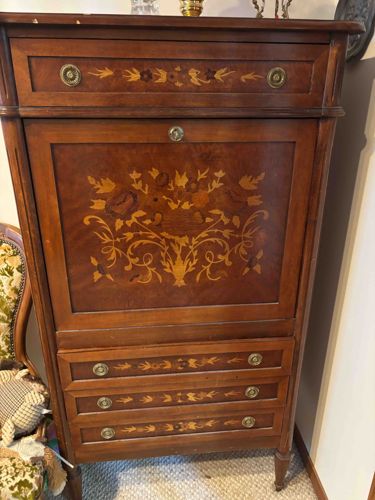 Italian Inlaid Walnut Abattant Secretary Desk