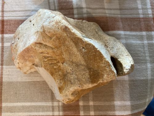 Paleolithic chert bi face hand axe chopper scraper tool portable rock art face effigy found in Guthrie OK measuring 5" x 4"