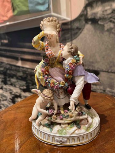 Meissen Style Rococo Figurative Group of Lovers with Cupid