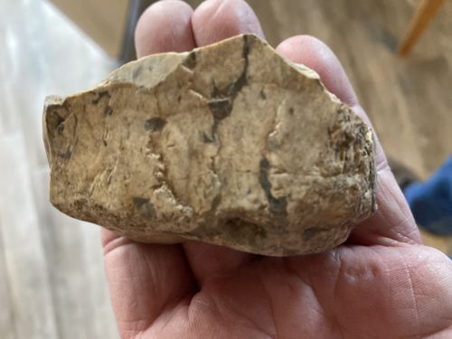 Acheulean chert bi face hand axe scraper tool found in Guthrie, OK measuring 3" x 1.75"
