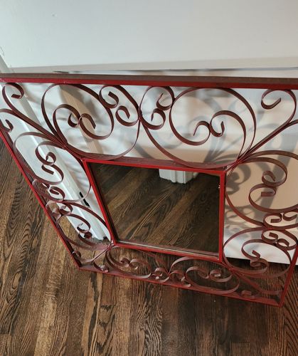 Red Wrought Iron Scrollwork Wall Mirror