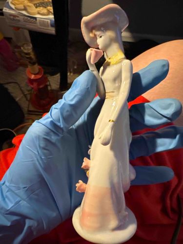 Vintage Porcelain Lady Figurine with Pink Hat and Floral Accents