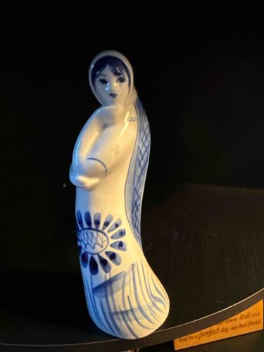Gzhel Hand-Painted Porcelain Figurine of a Woman with an Infant