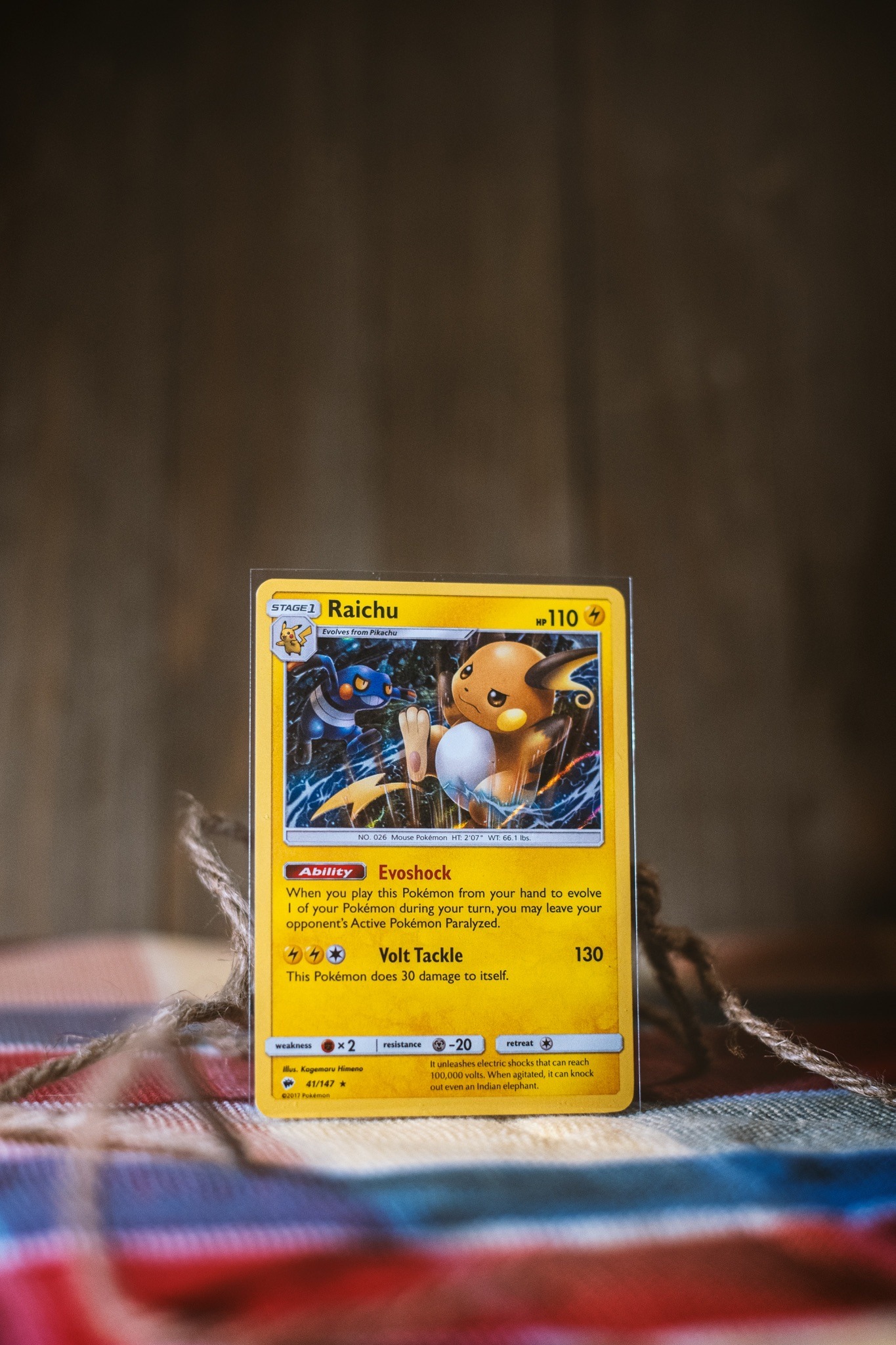 This is a standard-sized Pokemon trading card featuring the character Raichu from the Sun & Moon: Burning Shadows expansion set, released in 2017. The card is a Stage 1 Lightning-type Pokemon with 110 HP and is identified by the collector number 41/147. The artwork, credited to illustrator Kagemaru Himeno, depicts Raichu engaged in battle against a Croagunk. Notable card features include the 'Evoshock' Ability and the 'Volt Tackle' attack which deals 130 damage. The card layout represents the Sun & Moon era design, characterized by its specific yellow border and lower-left placement of the set symbol (a black flame icon) and rarity star. Physically, the card appears to be in a protective plastic sleeve, which has preserved its surface from direct contact. The corners appear sharp and the edges show no immediate signs of whitening or chipping in the visible front view. The centering appears relatively balanced, though a precise appraisal would require viewing the reverse side and checking for micro-scratches under direct light. The printing quality is consistent with official The Pokemon Company international manufacturing standards.