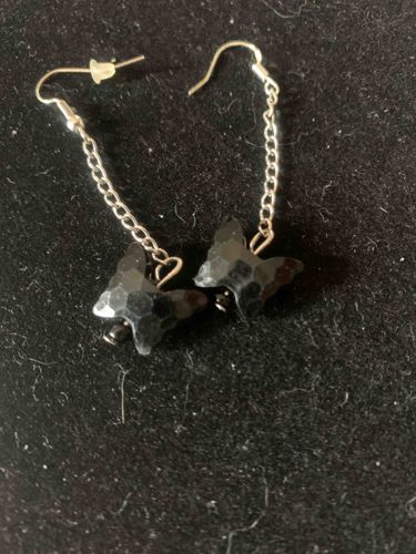 Faceted Black Butterfly Dangle Earrings