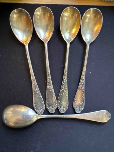 Set of Five Art Nouveau Silver-Plated Table Spoons