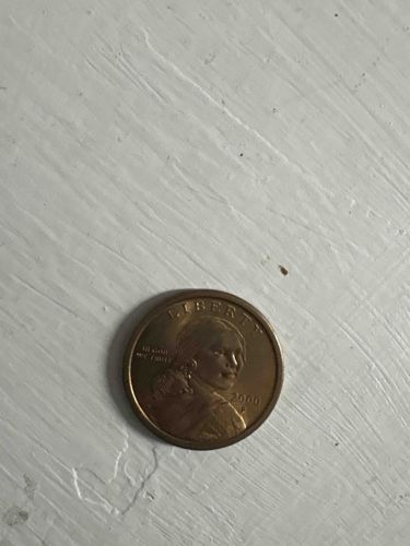 This is a 2000-P minted Sacagawea 'Golden Dollar' coin, featuring the obverse design by artist Glenna Goodacre. The obverse depicts Sacagawea in profile carrying her infant son, Jean Baptiste Charbonneau, on her back. The coin is composed of a copper core clad with manganese brass, giving it its characteristic golden color. It measures 26.5mm in diameter with a plain edge. Inscriptions include 'LIBERTY', 'IN GOD WE TRUST', the year '2000', and the 'P' mint mark indicating it was produced at the Philadelphia Mint. The coin appears to be in circulated condition, showing a significant amount of dark, uneven patina and surface oxidation across the entire obverse. There are minor contact marks and signs of wear on the high points of the design, particularly on Sacagawea's cheek and hair. No major gouges or deep scratches are immediately visible in this view, but the heavy toning masks some finer details of the struck surface. This coin represents the inaugural year of the Sacagawea dollar series, a key piece of early 21st-century American numismatic history.