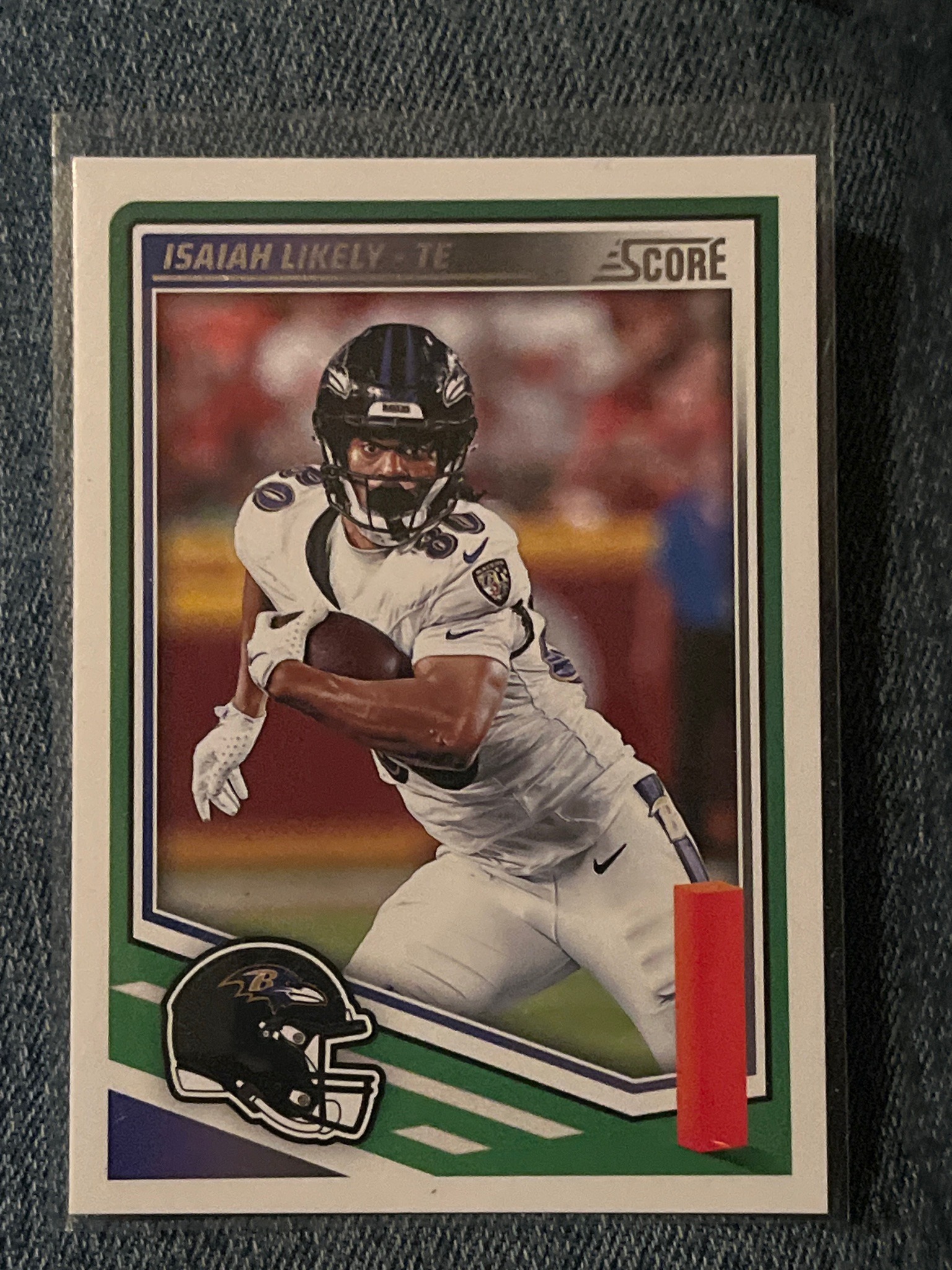 2023 Panini Score Isaiah Likely Green Border Parallel Football Card