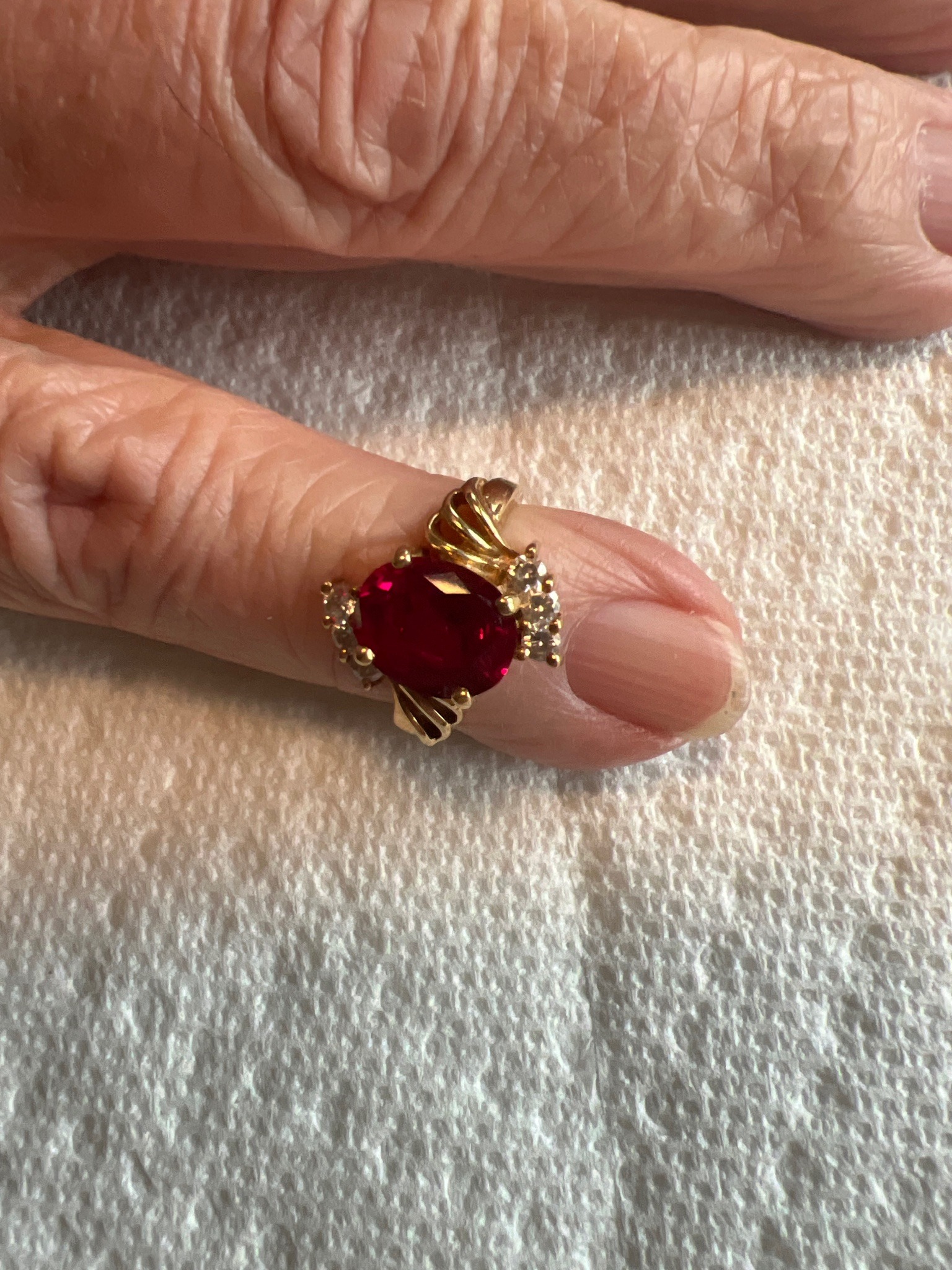 Oval-Cut Ruby and Diamond Yellow Gold Fashion Ring