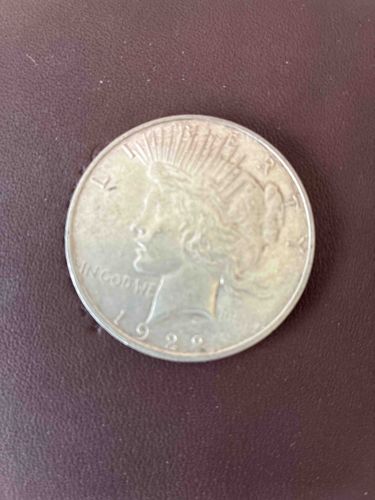 This item is a United States Peace Silver Dollar, dated 1923. It features the obverse design by Anthony de Francisci, depicting the profile of Lady Liberty facing left wearing a radiant coronet. The coin is composed of 90% silver and 10% copper, with a standard diameter of 38.1 millimeters. The word 'LIBERTY' is inscribed along the top arc, while the motto 'IN GOD WE TRUST' is positioned horizontally across the field, and the date '1923' is centered at the bottom. Physically, the coin exhibits a light silver-gray color with a visible patina consistent with its age. There are signs of moderate wear on the high points of Liberty's hair and the tips of the crown's rays, suggesting a grade in the 'About Uncirculated' to 'Extremely Fine' range. Minor surface contact marks and light scratches (bag marks) are visible in the fields. The strike appears standard for the era, with no obvious mint errors. The craftsmanship reflects the classic Art Deco style of the early 20th-century American numismatics, symbolizing the era following World War I.