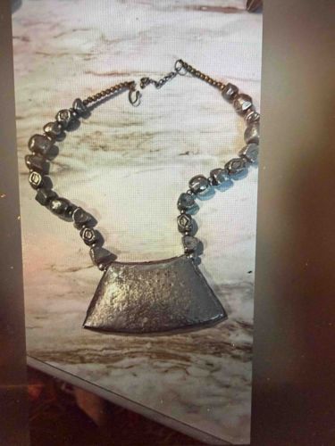 Vintage Industrial-Style Pewter Brutalist Bib Necklace