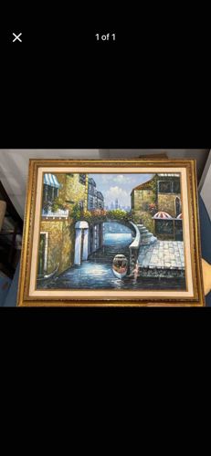 Framed Venetian Canal Oil Painting