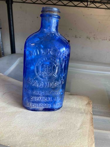 Vintage Cobalt Blue 'Milk of Magnesia' Glass Bottle