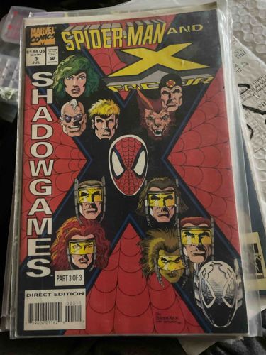 This is a standard-sized American comic book published by Marvel Comics, dated July 1994. The cover art features a prominent red and blue 'X' motif set against a webbed background, framing character portraits including Spider-Man and members of X-Factor. The cover displays the Marvel Comics logo, a price of $1.95 US, and the Comics Code Authority seal in the upper left corner. Positioned at the bottom left is a 'Direct Edition' barcode, typical of the 1990s era of comic distribution. The artwork is signed by Sal Buscema and Art Thibert in the lower right quadrant. The item is currently housed in a protective plastic polybag with a white backing board. Regarding its condition, the comic shows signs of handling including visible color-breaking creases along the spine and blunted corners, particularly at the top right. Minor surface scuffing and edge wear are present on the cover. Despite these age-related flaws, the colors remain vibrant and the overall structural integrity appears sound. The interior pages, though not fully visible, likely consist of mass-produced pulp paper which may show slight yellowing commensurate with its age of nearly three decades.
