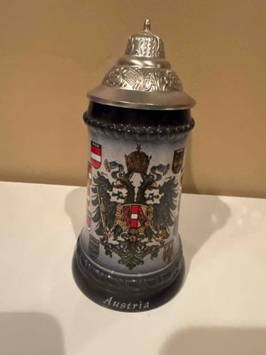 Vintage Austrian Imperial Eagle Stoneware Beer Stein with Pewter Lid