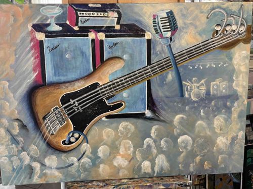 Original Mixed Media Painting of a Fender Bass Guitar by Dale Haessly
