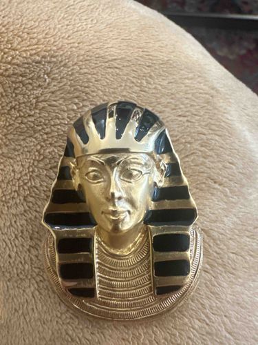 Vintage Gold-Tone and Black Enamel Tutankhamun Pharaonic Brooch